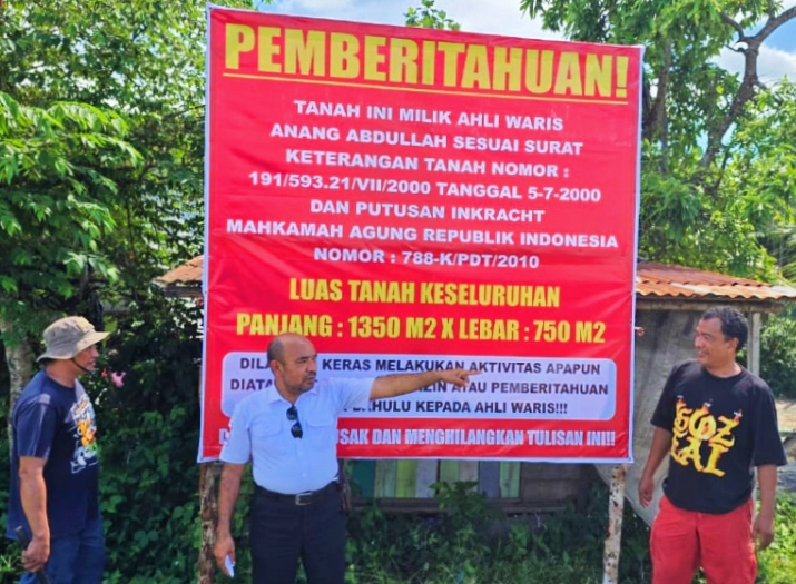 Baleho Kepemilikan Lahan Ahli Waris Anang Abdullah Dirusak Pihak Tak Dikenal