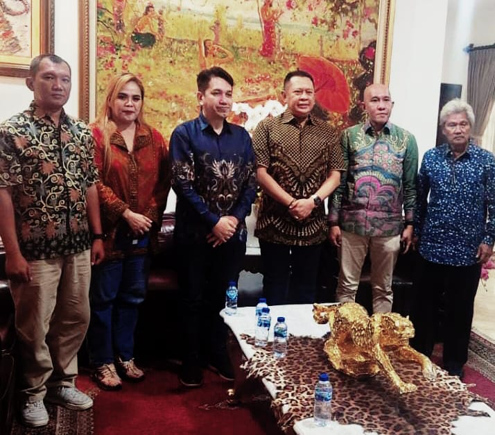 Bambang Soesatyo (tiga dari kanan) bersama pengurus IPJI menyatakan bersedia hadir pada Munas ke V IPJI yang diselenggarakan di Jakarta. (Foto: Istimewa/HiTv)