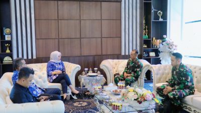 Bupati Barru, Andi Ina Kartika Sari, menerima kunjungan audiensi Komandan Batalyon Artileri Pertahanan Udara (Arhanud) 16/Kostrad, Mayor Arh Herru Kurniawan, bersama jajaran di ruang kerjanya, lantai 5 Kantor Bupati Barru, Kamis (25/9/2025).