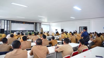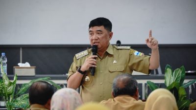 Bupati Garut, Abdusy Syakur Amin, memberikan arahan kepada Koordinator Wilayah Kecamatan Bidang Pendidikan dan Pegawai Dinas Pendidikan (Disdik) Kabupaten Garut, di Aula Dinsos Garut, Jalan Patriot, Kecamatan Tarogong Kidul, Kabupaten Garut, Selasa (9/9/2025).