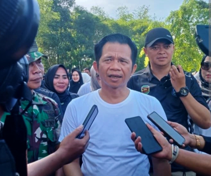 Bupati Purwakarta Saepul Bahri Binzein memberikan pernyataan usai peresmian jalan alternatif Rancadara-Gruduk, di Kecamatan Pondoksalam. (dok/ft/Raffa)