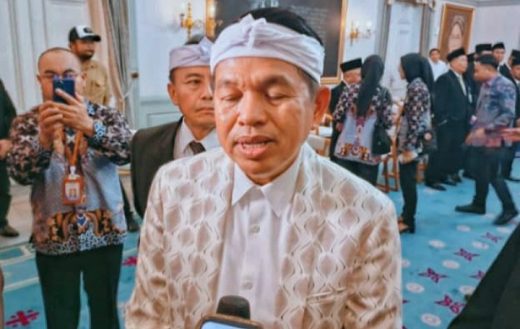 Gubernur Jawa Barat Dedi Mulyadi saat memberikan keterangan kepada wartawan di Gedung Sabuga ITB, Kota Bandung. (Foto/Raffa/HITV)