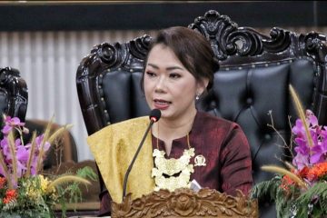 Ketua DPRD Belitung Vina Cristyn Ferani saat berikan sambutan di acara Rapat Paripurna XXIV Masa Persidangan III Tahun 2024–2025. (Dok/Foto/IS)