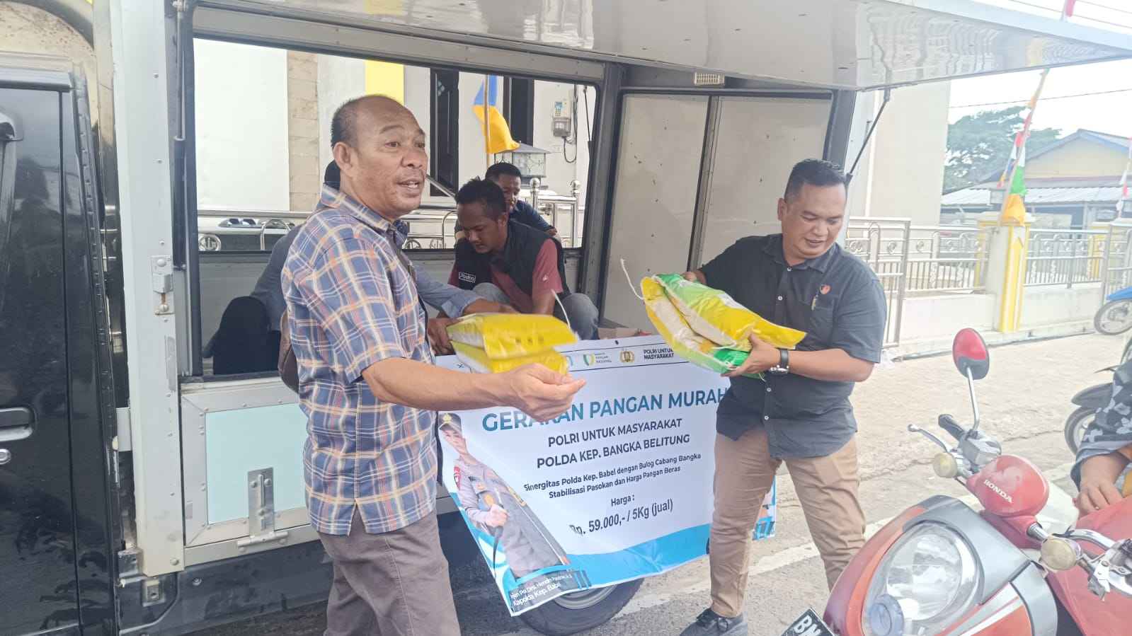 Gerakan Pangan Murah, Ditreskrimsus Polda Babel-Bulog Salurkan 2 Ton Beras SPHP Rp. 11.800/Kg