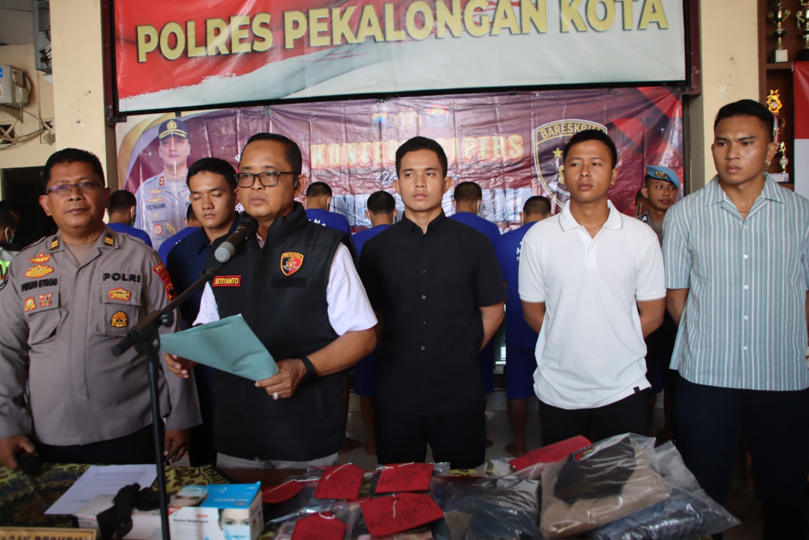 Dalam Konferensi Pers yang dilaksanakan di Serambi Mapolres Pekalongan Kota, Kapolres Pekalongan Kota AKBP Riki Yariandi, S.H., S.I.K., M.H. melalui Kasat Reskrim AKP Setiyanto, S.H., M.H., didampingi Kasat Samapta, Ps. Kasi Humas, Piket Pawas dan Pasis Akpol, menyampaikan kepada awak media bahwa Satreskrim berhasil mengamankan 9 (sembilan) orang tersangka dari 3 (tiga) kasus yang berbeda.