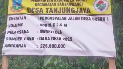 Proyek pengaspalan jalan desa di Dusun 1, Desa Tanjungjaya, Kecamatan Banjarwangi, Kabupaten Garut, menuai sorotan keras warga. Jalan sepanjang 800 meter dengan lebar 2,5 meter yang menelan anggaran Rp226 juta dari Dana Desa 2025 itu diduga dikerjakan asal-asalan.