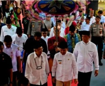 HITVBERITA.COM | Palangkaraya — Penyambutan berlangsung hangat dan penuh kekhidmatan. Jusuf Kalla yang hadir bersama rombongan menerima pengalungan lilis lamiang dan pemasangan sumping sebagai tanda penghormatan adat.