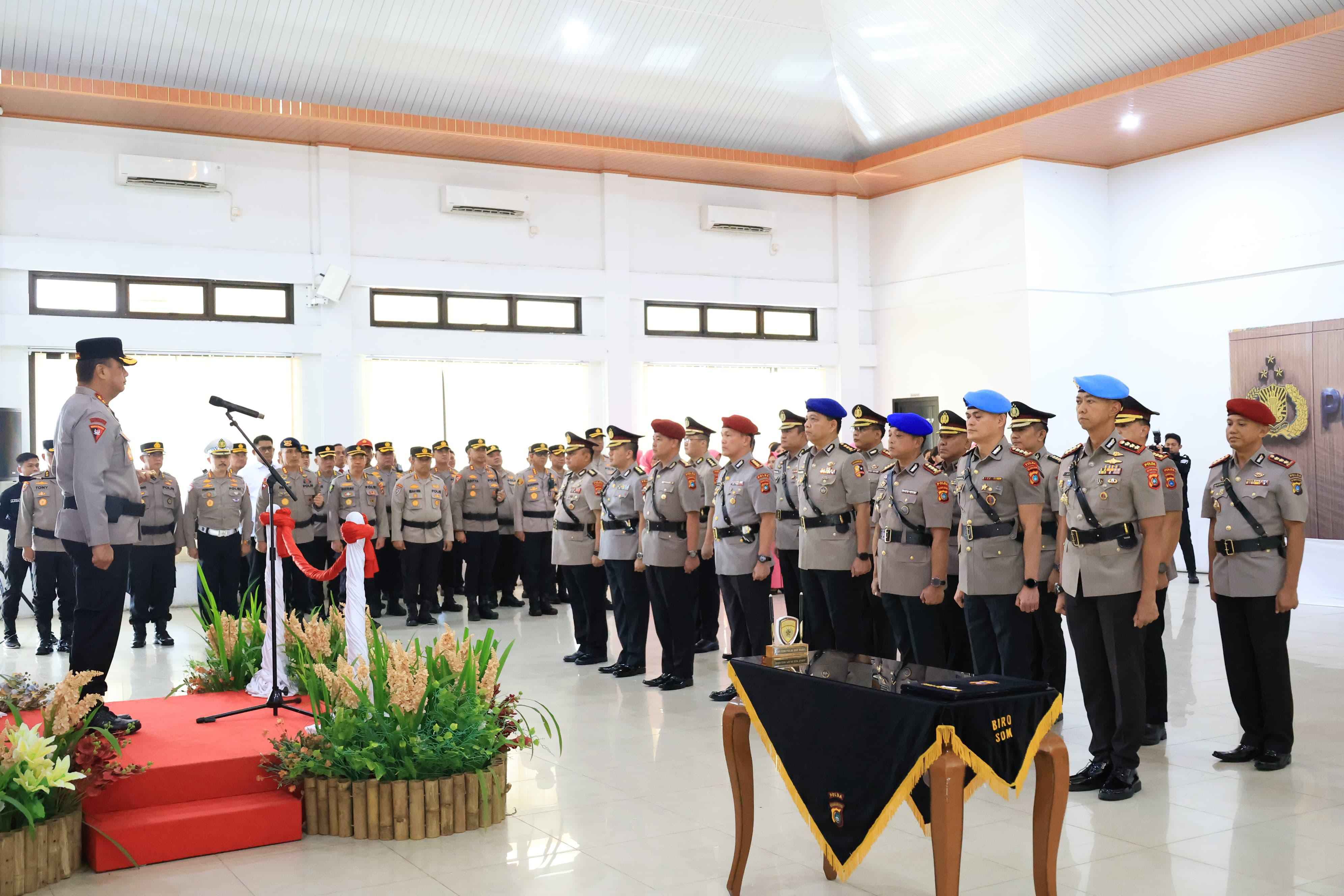 Upacara sertijab berlangsung di Gedung Tribrata Polda Babel, Senin (12/1/26) yang dihadiri Wakapolda Brigjen Pol Tony Harsono, Irwasda, Pejabat Utama hingga para Kapolres/ta jajaran.