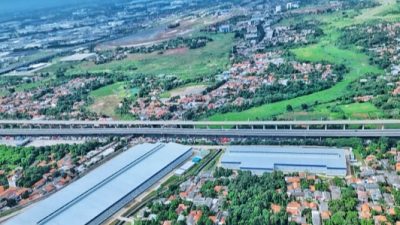 Terpantau dari udara Jalan Tol Jakarta-Cikampek ramai lancar. (Dok/Foto/Raffa)
