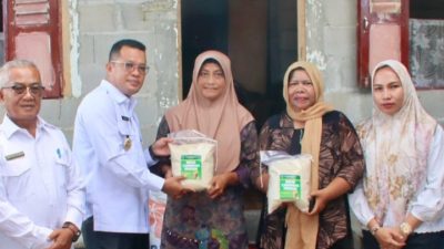 Bantuan pangan berupa beras ini diserahkan kepada dua kepala keluarga yang terdampak langsung akibat bencana angin puting beliung.