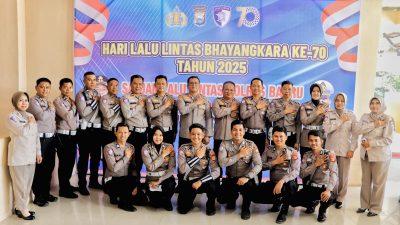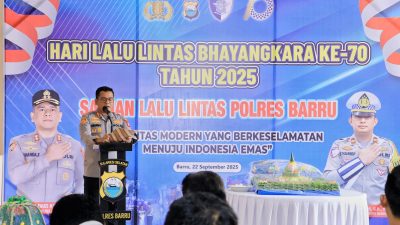 Polres Barru menggelar peringatan Hari Lalu Lintas Bhayangkara ke-70 tahun 2025 di Mako Polres Barru, Jalan Jenderal Sudirman, Senin (22/09/2025) yang diikuti jajaran pejabat utama, para kapolsek, dan personel Polres Barru.