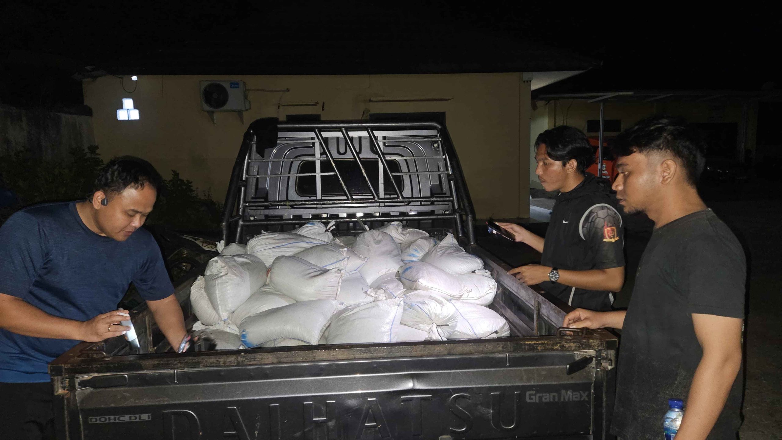 Hasil penyelidikan menemukan aktivitas mencurigakan berupa pemindahan puluhan karung dari kendaraan ke kapal kayu. Tim gabungan langsung melakukan penyergapan dan mengamankan dua orang pelaku: