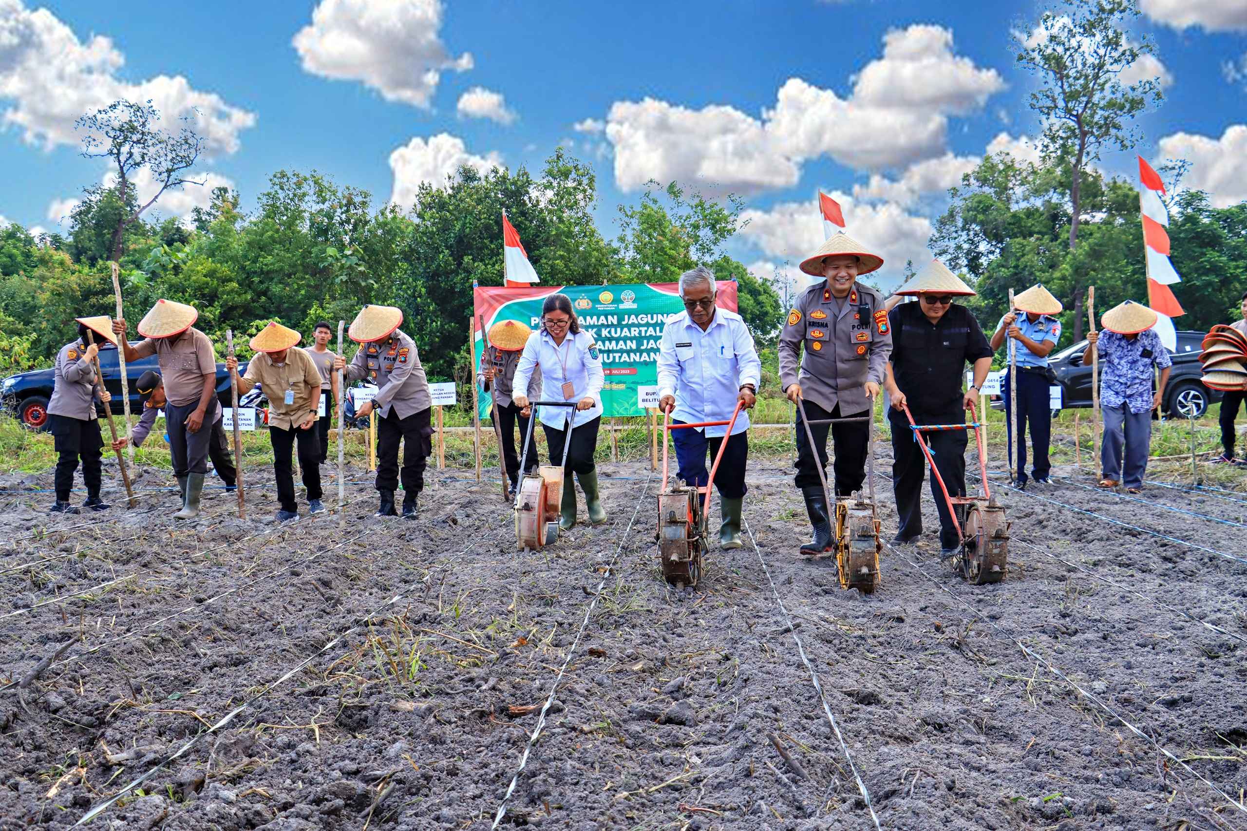 Polres Belitung melaksanakan kegiatan Penanaman Jagung Serentak Kuartal III Tahun 2025 di lahan Perhutanan Sosial Desa Air Selumar, Kecamatan Sijuk, Kabupaten Belitung Rabu, 9 Juli 2025.
