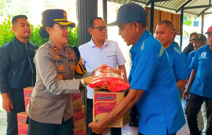 Polres Karimun Salurkan Sembako untuk Ojek dan Porter Pelabuhan