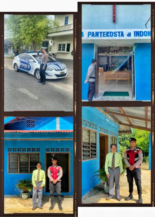Foto Kolase: Polres Lingga saat lakukan pengamanan ibadah Minggu secara serentak di seluruh gereja di wilayah Kabupaten Lingga. (Foto/Ruslan/HITV)