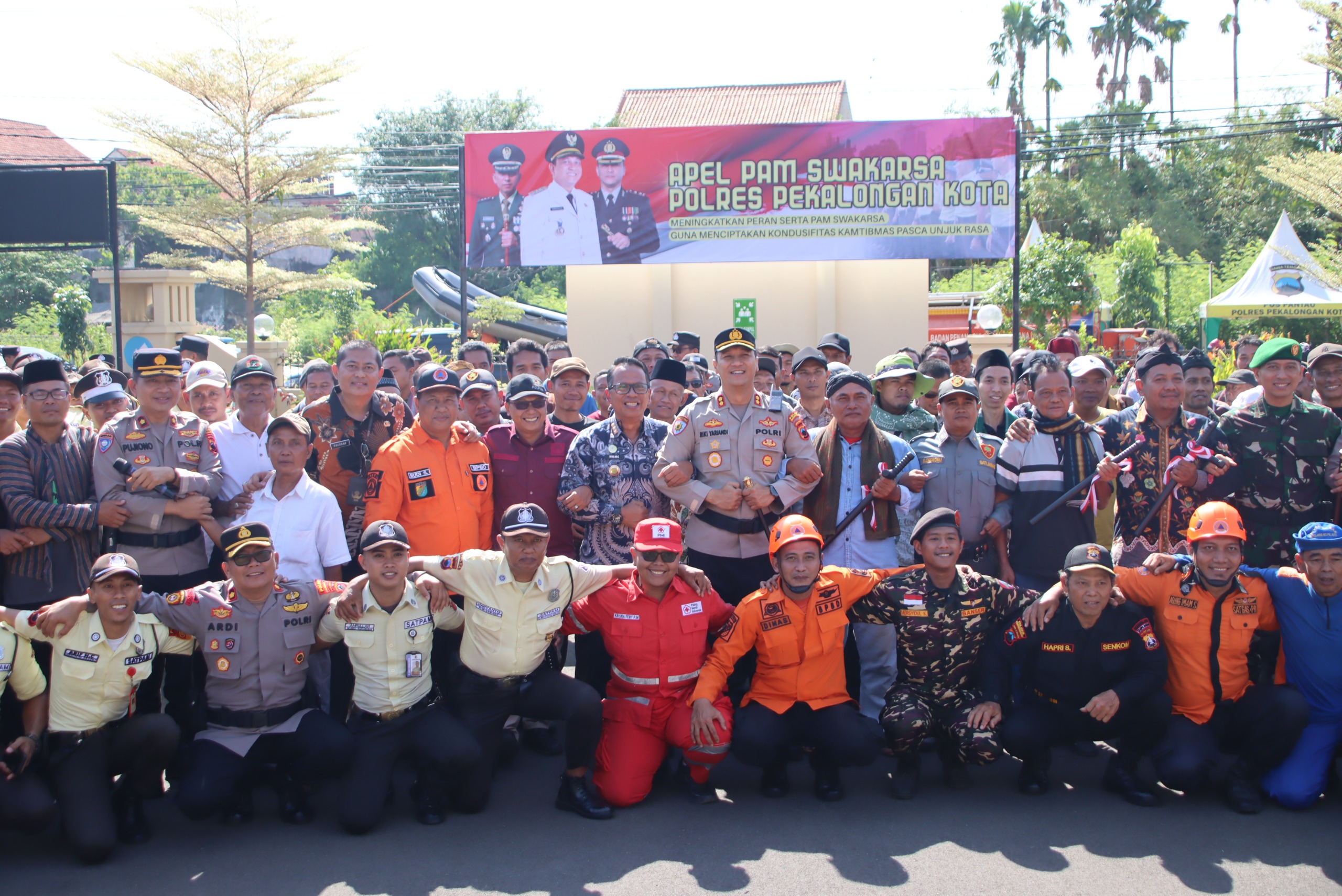 Apel Pam Swakarsa diikuti oleh pasukan gabungan dari Bhabinkamtibmas, Satpam, Kasatkamling, Banser, Senkom, BPBD, PMI, tim Rescue Sat Pol Air dan SAR Arnavat. Turut hadir jajaran Forkopimda dan Pejabat Utama Polres Pekalongan Kota.