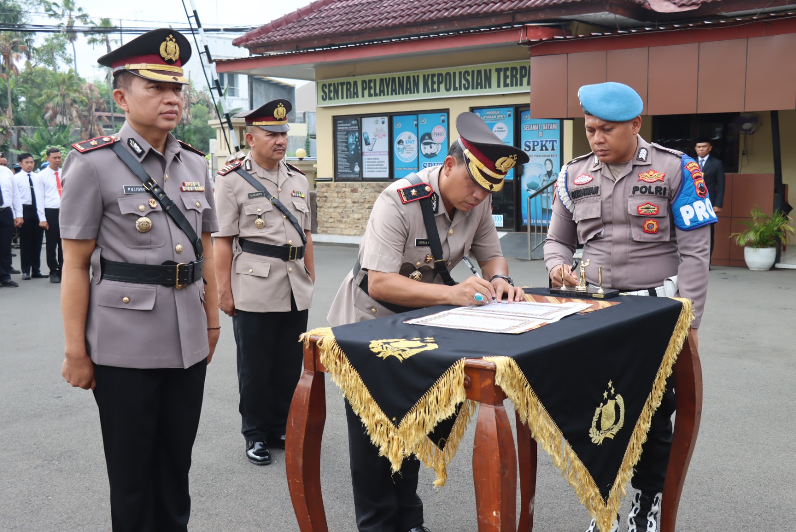 Upacara Sertijab dipimpin langsung Kapolres Pekalongan Kota AKBP Riki Yariandi, S.H., S.I.K., M.H., diikuti jajaran pejabat utama, perwira staf, dan personel Polri maupun ASN serta Pengurus Bhayangkari Cabang Pekalongan Kota.