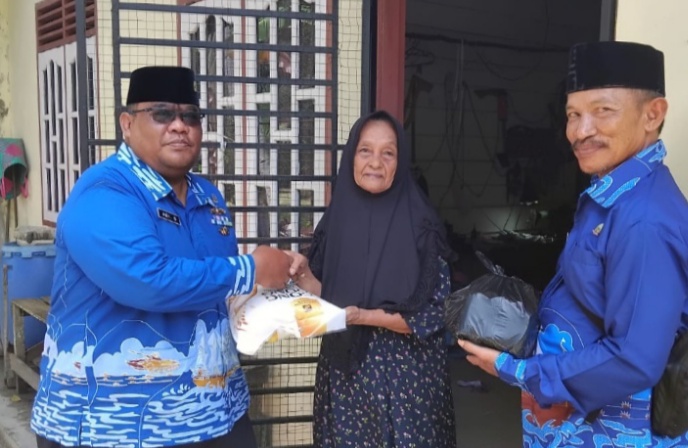 Kopka AL (Purn) Adi Suharyana, saat berikan bantuan sembako. (Foto/Rus/Hitv)