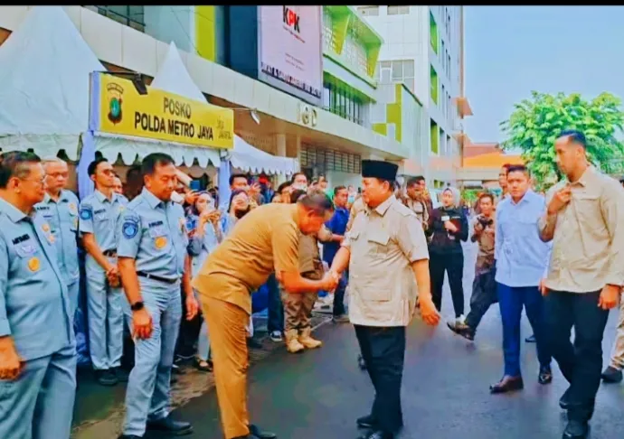 Di halaman rumah sakit, Presiden Prabowo disambut Wali Kota Bekasi Tri Adhianto dan Kapolda Metro Jaya Asep Edi Suheri, dan jajaran manajemen rumah sakit.