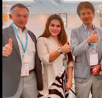 Owner PT Titani Abadi Utama Rini Magdalena Gultom (Tengah), diapit kiri dan kanan oleh petinggi PT Paramount Bed Indonesia. (Dok/Foto/YdQ)