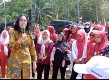 Ibu Inke Krisdianto, istri Anggota DPRD Jawa Tengah Juli Krisdianto, SE hadir menyemarakkan acara dengan motivasi dan hiburan bagi masyarakat desa Karanggintung kecamatan Kemranjen Banyumas. (Foto/Ahdiyat/HITV)