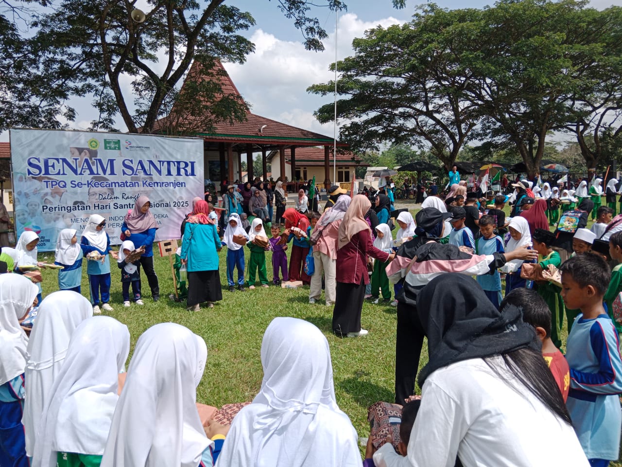 Ratusan santri dari berbagai Taman Pendidikan Al-Qur’an (TPQ) di Kecamatan Kemranjen, Banyumas, tumpah ruah di Lapangan Sibalung dalam gelaran Senam Santri yang berlangsung semarak, Sabtu pagi (12/10/2025). Kegiatan yang menjadi bagian dari peringatan Hari Santri Nasional 2025 itu mengusung tema “Mengawal Indonesia Merdeka Menuju Peradaban Dunia”, sekaligus menjadi simbol kebersamaan dan semangat juang para santri dalam meneladani nilai-nilai keislaman dan cinta tanah air.