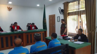 Proses jalannya sidang di Pengadilan Negeri Tanjungpinang, dengan terdakwa empat warga Dabo atas perusakan dan mencabut tanaman sawit. (Foto: Istimewa)