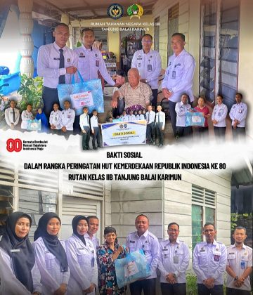 Rumah Tahanan (Rutan) Kelas IIB Tanjung Balai Karimun menggelar bakti sosial dengan membagikan 10 paket sembako kepada warga sekitar dan pensiunan pegawai, Jumat (15/8/2025) pagi.