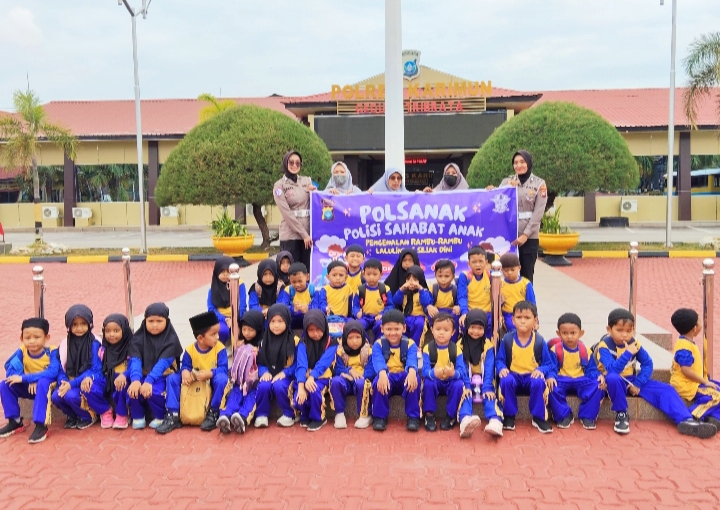 Satuan Lalu Lintas (Satlantas) Polres Karimun menyambut hangat kunjungan 32 murid Taman Kanak-kanak (TK) AURA, Kecamatan Tebing, dalam kegiatan Polisi Sahabat Anak (PSA) di Mapolres Karimun, Jumat (13/2/2026).