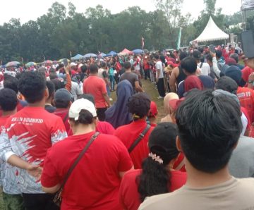 Dengan mengenakan kaus merah putih, topi, hingga atribut sederhana bernuansa kemerdekaan, para peserta berkumpul sejak pukul 07.00 di titik start. (Foto/Ritonga/HITV)
