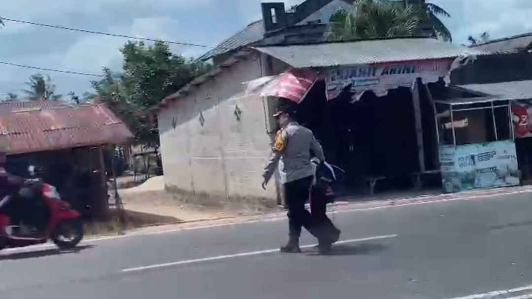 Tanpa ragu, Kapolres yang masih mengenakan seragam dinasnya turun langsung mendekati anak tersebut dan menggandeng tangan untuk membantu menyeberang dengan hati-hati seraya memberikan isyarat kepada pengendara.