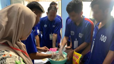 Dalam sesi ini, peserta pelatihan diajarkan secara langsung mulai dari pengenalan bahan-bahan, penggunaan peralatan, hingga langkah-langkah dalam pembuatan stick keju. Warga binaan tampak antusias belajar dan mempraktikkan langsung pembuatan adonan hingga tahap pengolahan stick keju, mengikuti arahan instruktur.
